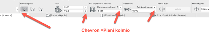 - "Pieni kolmio/väkänen/natsa (Chevron)" symbolit eivät ole keskitettyjä osassa Archicadin käyttöliittymää.