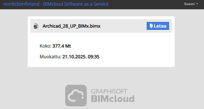*Ominaisuuden hyödyntäminen edellyttää, että BIMcloudilla on Internet-yhteys, ja järjestelmänvalvoja on sallinut toiminnon.