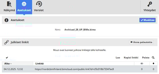 BIMcloudin julkiset linkit