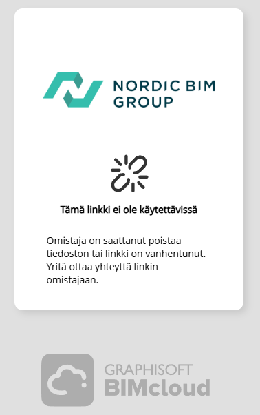Poistetun linkin avaaminen tuottaa oheisen ilmoituksen: