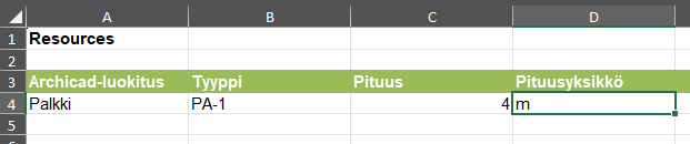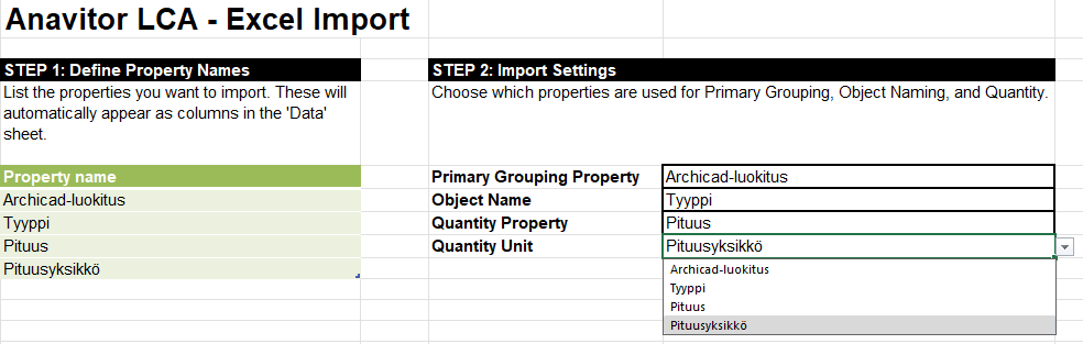 - Avaa Anavitorin BIM & LCA Paketin Excel-malli.