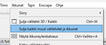 Jos taustalla oli useita piirustusikkunoita (välilehtiä) auki, kun viimeksi tallensit ja suljit projektin, niiden palauttamisella on vaikutus tiedoston uudelleenavaamiseen kuluvaan aikaan. Syynä on se, että tiedostoja avattaessa Archicadin on käytävä läpi ja päivitettävä kaikki taustalla olevat ikkunat, ennen kuin voit jatkaa tiedoston käyttöä. Käytä siksi tätä toimintoa sulkeaksesi ne ennen tallentamista ja tiedoston sulkemista.