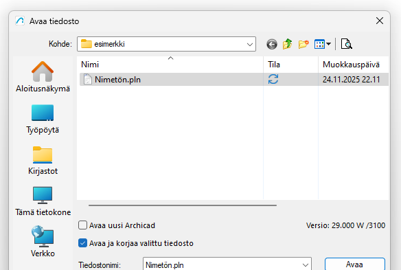 - Jos työskentelet yksittäisten tiedostojen parissa (Solo), yritä löytää asiaankuuluvat kirjastot tietokoneelta tai palvelimelta - huomaa, että jos suinkin BIMCloud on käytettävissäsi, se on kuitenkin tällöinkin paras paikka josta linkittää kirjastot - PLN-projekti voi käyttää tiimikirjastoja aivan yhtä hyvin kuin tiimiprojektit!