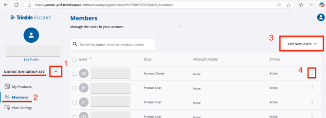 Lisää uusi käyttäjä yrityksellesi valitsemalla [3] Add New Users (lisätieoa uuden käyttäjän lisäämisestä Trimblen tukisivuilla).