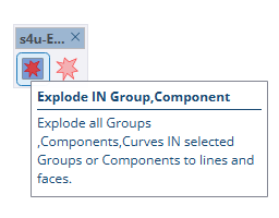 - Työkalun työkaluriviltä ensimmäinen painike, Explode IN Group, Component , purkaa valittujen komponenttien sisällä olevat komponentit (komento löytyy myös Extensions-valikosta Suforyou-kohdasta):