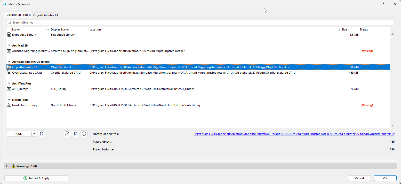 Selv om du valgte å migrere Archicad bibliotekene, så ender du nok opp med en haug med sorte prikker i prosjektet ditt.