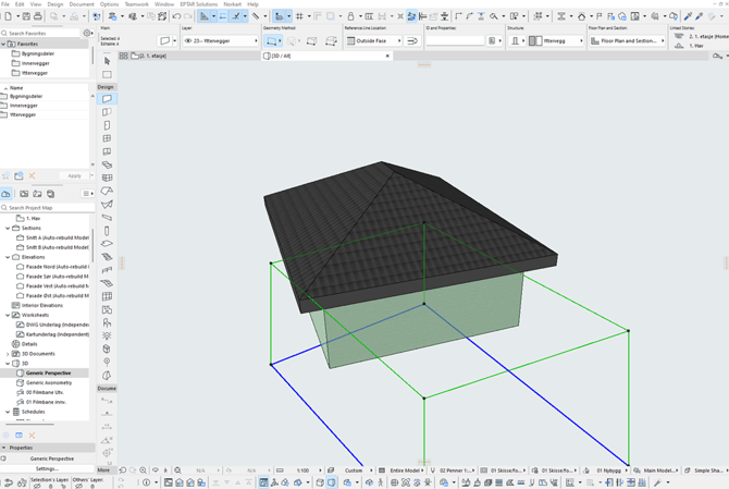Disse stegene må gjøre i både Plan, 3D, snitt/fasader og design options (f.o.m v.27).