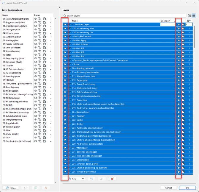 - Åpne layers. Lås opp og synligjør alle lag