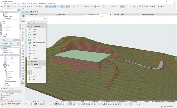 ArchiTerra har hatt en svært positiv utvikling de siste årene og vi har akkurat lansert versjon 6 med mange gode nyheter. Terrenget fra Norkart (Archicads mesh) kan direkte uten konvertering nå bearbeides videre med ArchiTerras verktøy og funksjoner.
