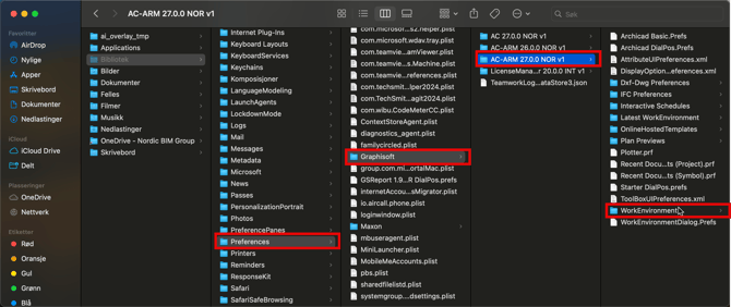 - Nå i Finder-vinduet som vises, gå inn i Preferences/GRAPHISOFT/AC XX.0.0 NOR v1