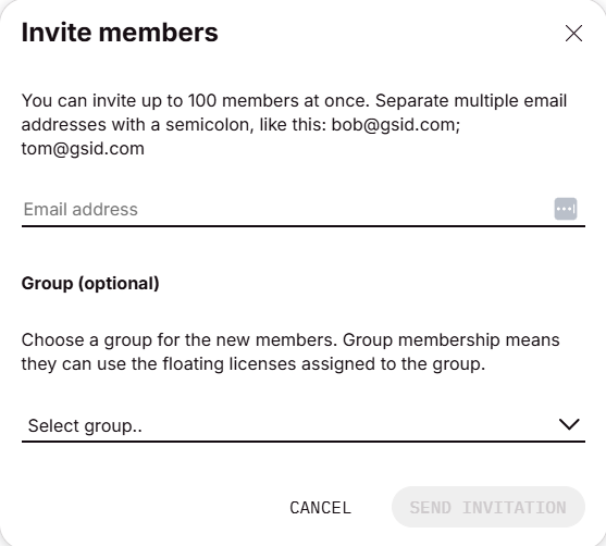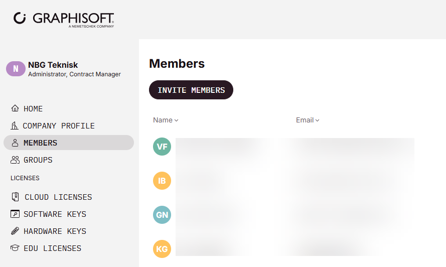 Etter bruker har opprettet en GS ID, kan administrator av firmaets konto invitere inn i firmaet og tildele lisens fra firmaoversikten - Company Management