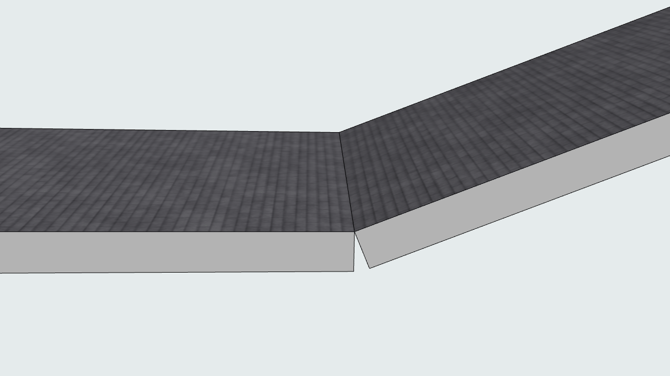 FOR Å KOBLE SAMMEN TO SINGLE-PLANE TAK I ULIKE VINKLER KAN MITRED EDGE BRUKES TIL Å JUSTERE KANTENE AUTOMATISK.