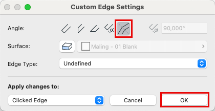 - Velg Mitred Edge: I dialogboksen for Custom Edge Settings, gå til delen Angle. Under denne delen velger du Mitred Edge. Denne innstillingen justerer automatisk kantene på begge takene slik at de møtes sømløst med riktig vinkel.