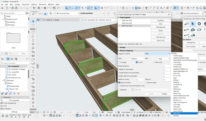 For å legge til bjelkesko i ArchiFrame, må de legges til ved hjelp av manuell redigering.