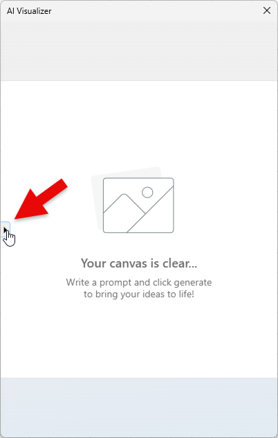 Da vil Ai Visualizer paletten åpne seg opp. Trykk på den lille pilen på venstre side, og utvid gjerne paletten litt så du får plass til alt innholdet.