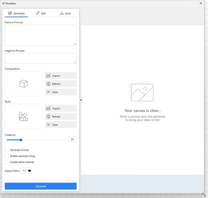 Over ser du hvordan AI Visualizer paletten ser ut.