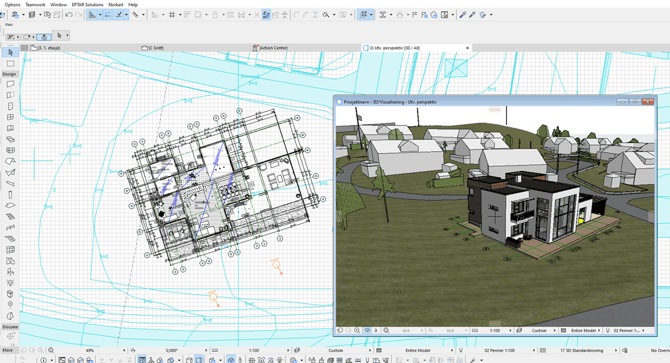 Har man flere bygg som skal plasseres ut på et terreng, kan dette enkelt gjøres med Hotlink-funksjonen i Archicad