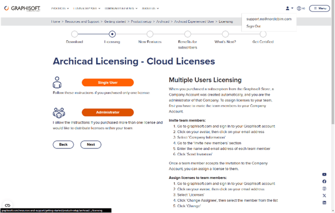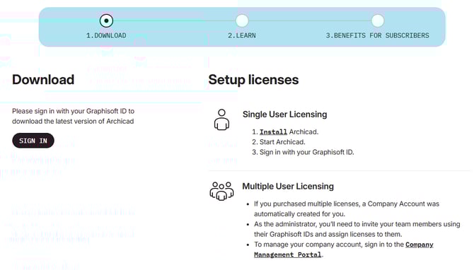 - Når du har lastet ned og installert Archicad, gå videre til neste steg om Licensing.