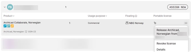 - Release from device: Fjerner lisensen fra brukerens maskin, slik at den kan brukes på en annen.