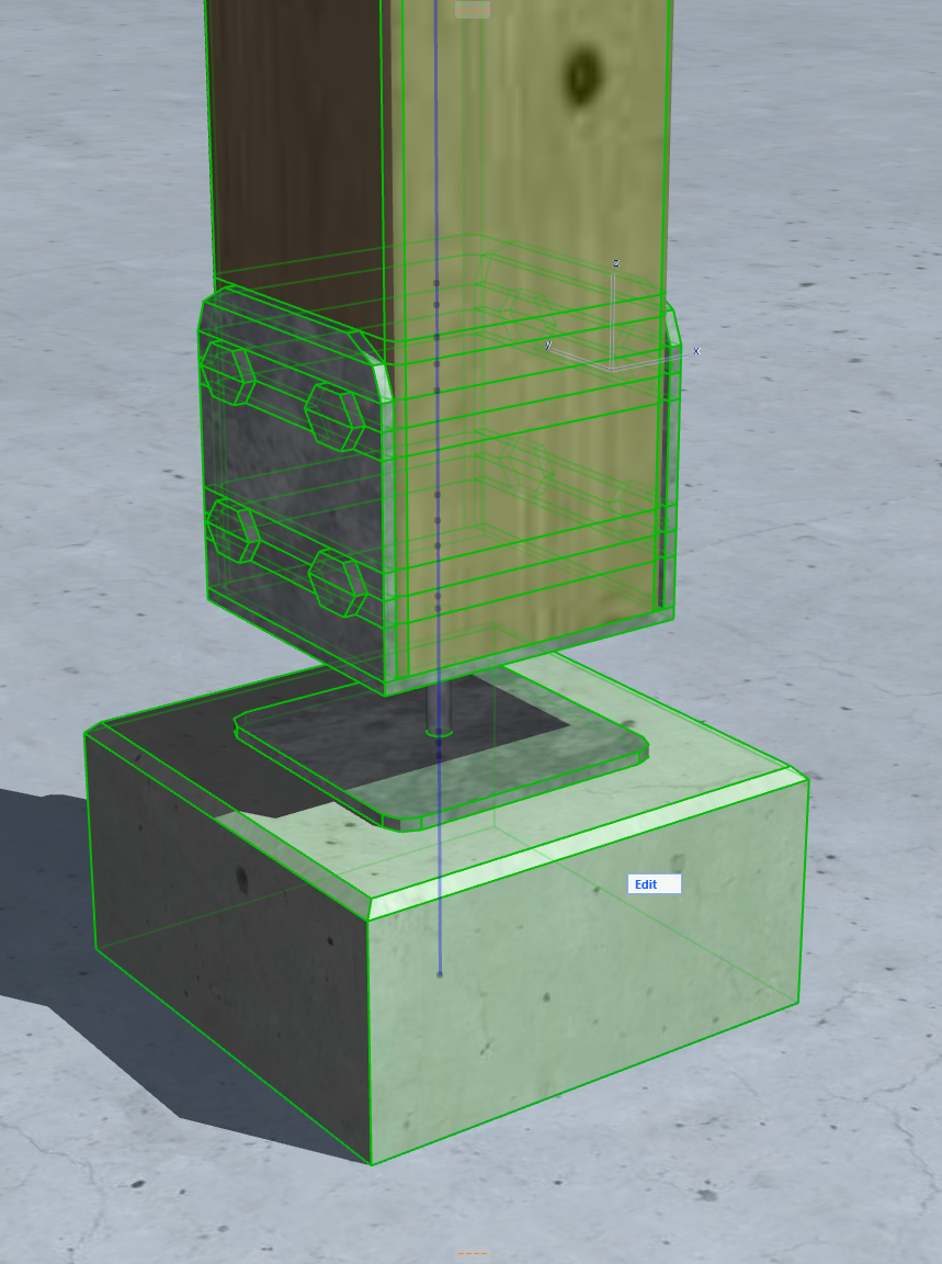 Over det igjen har jeg lagt til noen segmenter med den komplekse profilen som har trebjelken og metallplatene, men jeg har også gjort metallplatene redigerbare a la profilen som hadde mutterene, så jeg får til en avrunding av metallplaten på toppen.