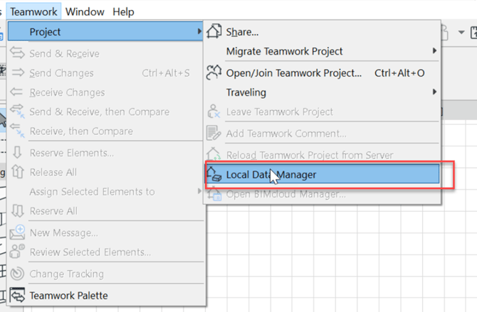 - I menylinjen, gå til Teamwork > Project > Local Data Manager