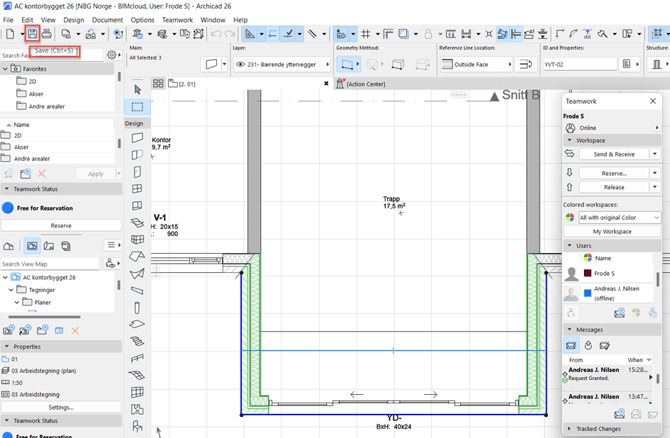 ✅ Lagre ofte – Ta en "Save" og lagre prosjektet fem til seks ganger per dag, uavhengig av "Send & Receive". Dette sikrer at du har en backup av dine egne endringer uten å dele dem umiddelbart.