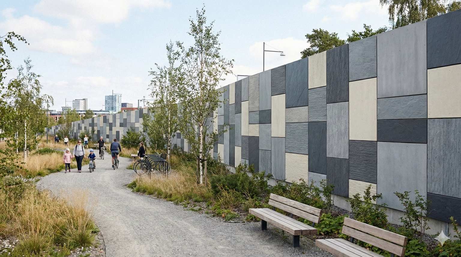 Swisspearls fibercementskivor från spill- och lagerlager är extremt väderbeständiga och lämpliga för utomhusmiljöer. Men landskapsarkitektens problem är inte om materialen duger. Det är: