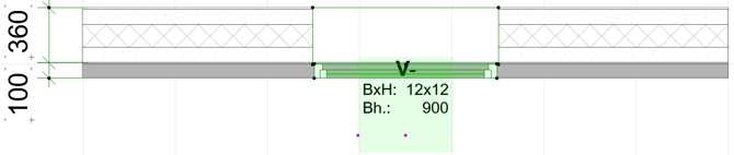 Markera fönstret och ställ in Reveal to Wall Core på mötesväggens tjocklek – i det här fallet är den -100 mm